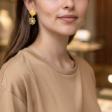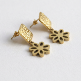 El diseño presenta una fascinante combinación de formas: un rombo que se une a un delicado motivo de flor. Con una longitud total de 3,5 cm, estos aros tienen el largo ideal para enmarcar el rostro y añadir movimiento.