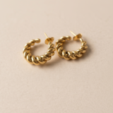 Aros Espiral en Acero con Baño de Oro 18k – Movimiento y Sofisticación. Un diseño que captura la esencia del dinamismo y la elegancia.