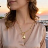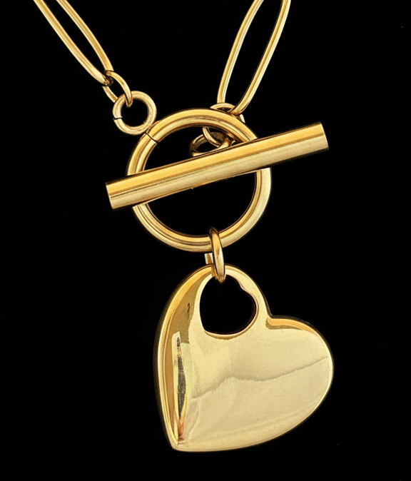 Fabricado en acero inoxidable de alta calidad y realzado con un lujoso baño de oro, esta pieza combina la durabilidad con un diseño de alta moda. Con una longitud de 50 cm + 2 cm el colgante de corazón, es ideal para lucir con escotes o sobre prendas de cuello alto.