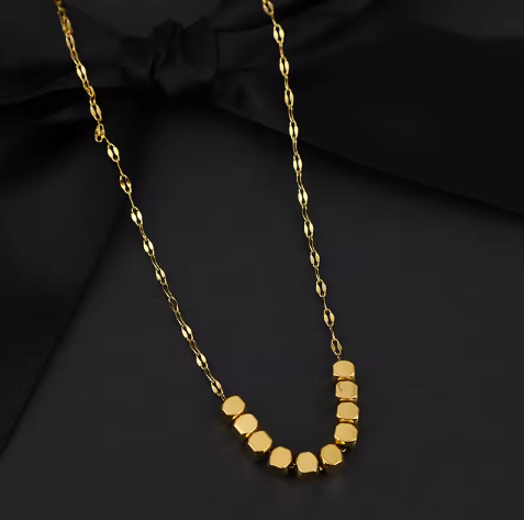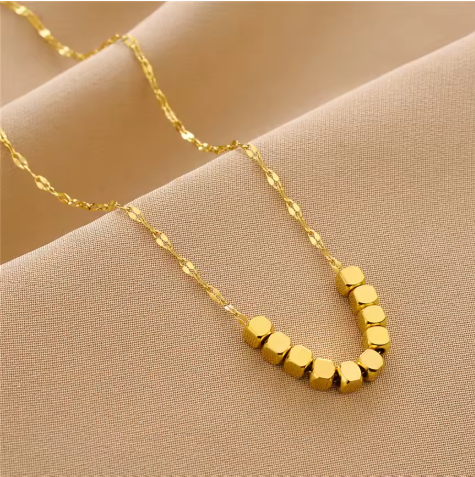 Collar de Acero con Cuentas Cuadradas, un diseño que celebra la fuerza y la armonía de las formas geométricas.