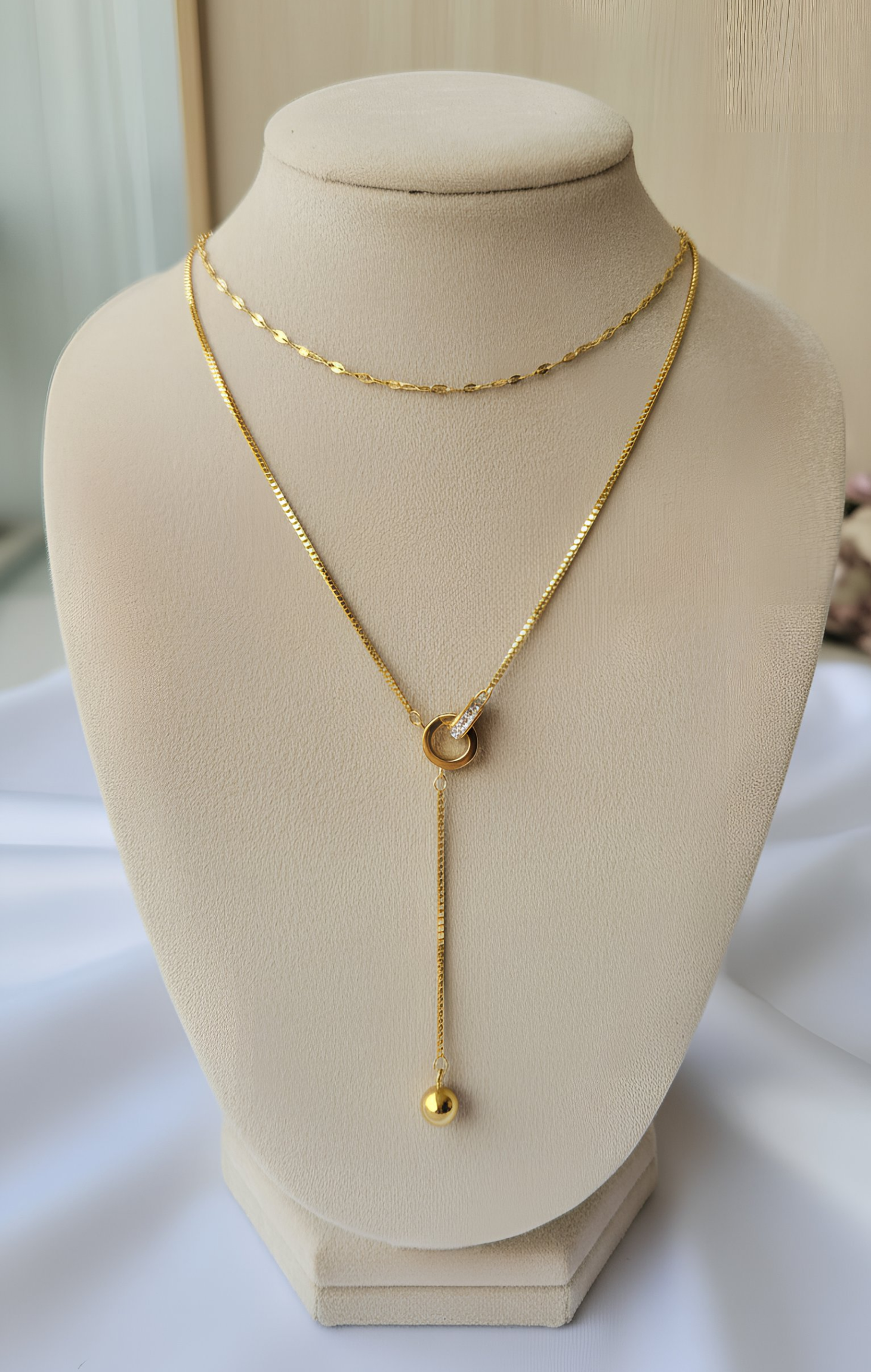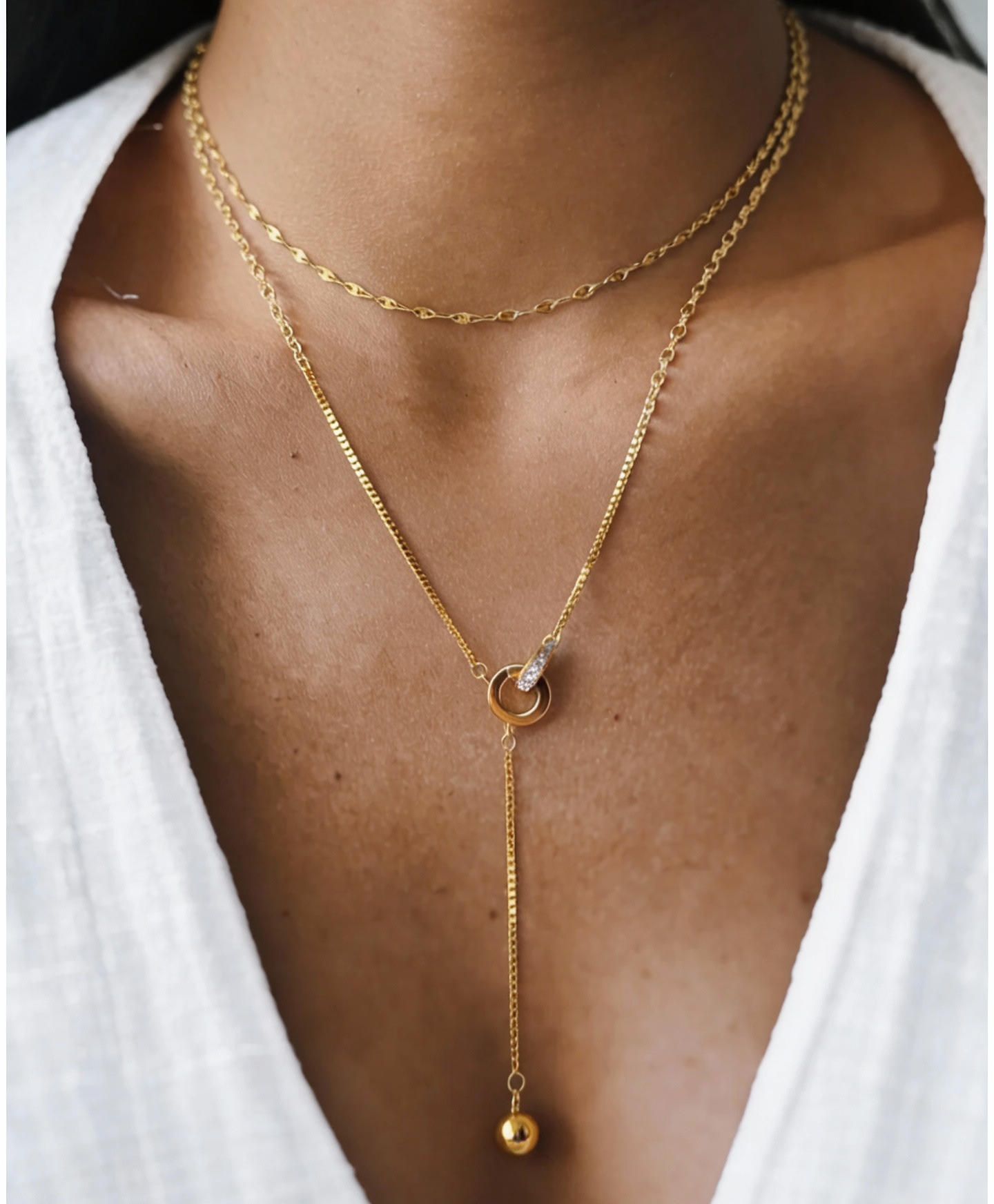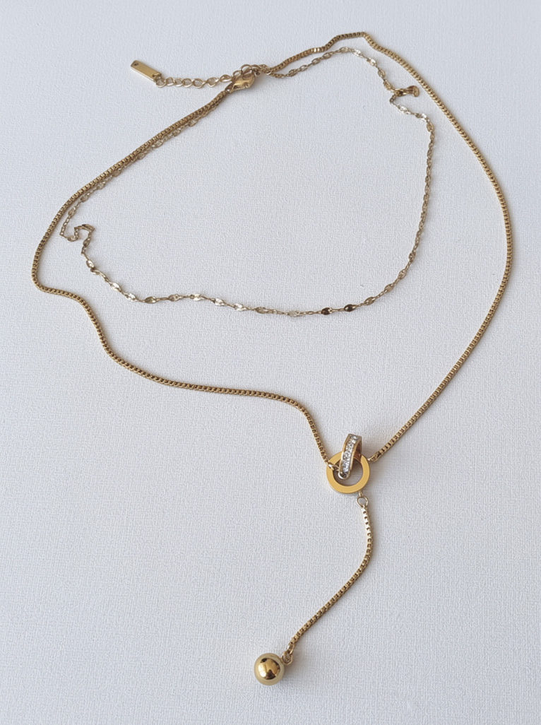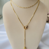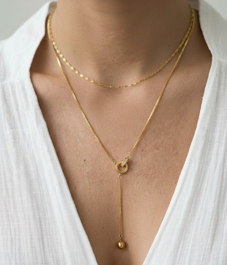 Eleva tu estilo con este sofisticado collar de doble cadena, diseñado para ofrecer un look de capas instantáneo y armonioso.