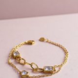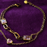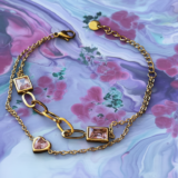Porta un toque de color sutil y elegancia a tu muñeca con esta encantadora pulsera. Fabricada en acero inoxidable de alta calidad y realzada con un lujoso baño de oro, esta pieza ofrece durabilidad y un brillo excepcional.